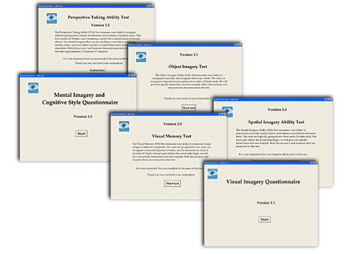We offer a whole battery of tests to access various cognitive abilities, including visual-object imagery, spatial imagery and verbal abilities, as well as cognitive strategies involved in information processing.